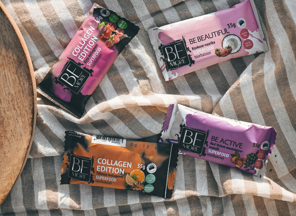 Be More products are all sugar-free and do not contain added sugar or artificial sugars. In Be More raw bars it is used, for example, dates, freeze-dried berry powders and agave syrup as sweeteners.