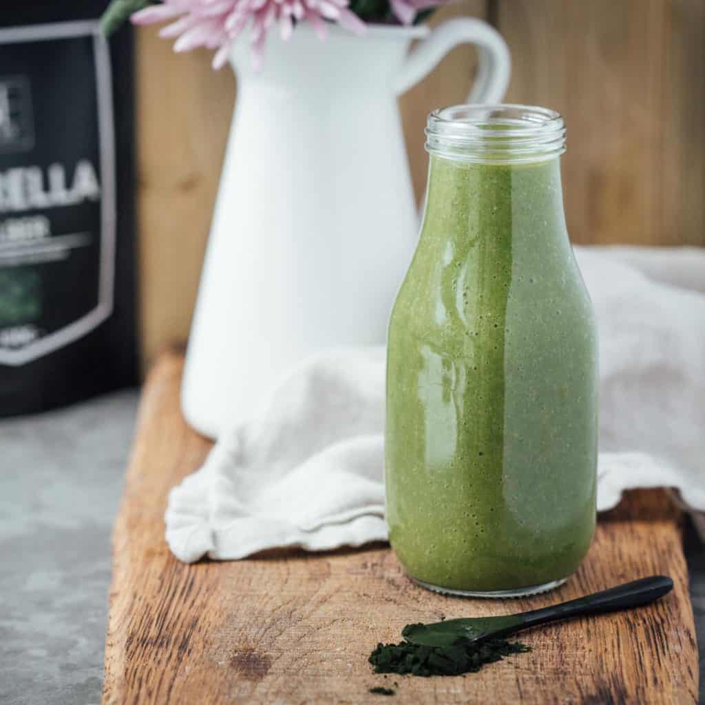 • Make a chlorella latte plant-based milk (like almond milk) – it gives it green cheerful colour and higher nutritive value.
