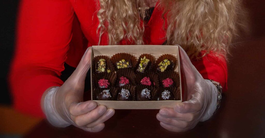 I make candy and its fillings from pure organic raw materials. They do not contain white sugar, dairy products or gluten. I create candy flavors using the gift of nature – berries, fruits, nuts, cocoa. My goal is to use the purest possible raw materials that have value for our body.