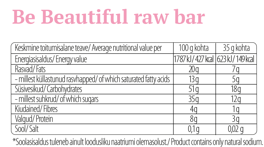 Our raspberry flavoured Be Beautiful raw bar is a perfect and healthy snack for Your everyday life!