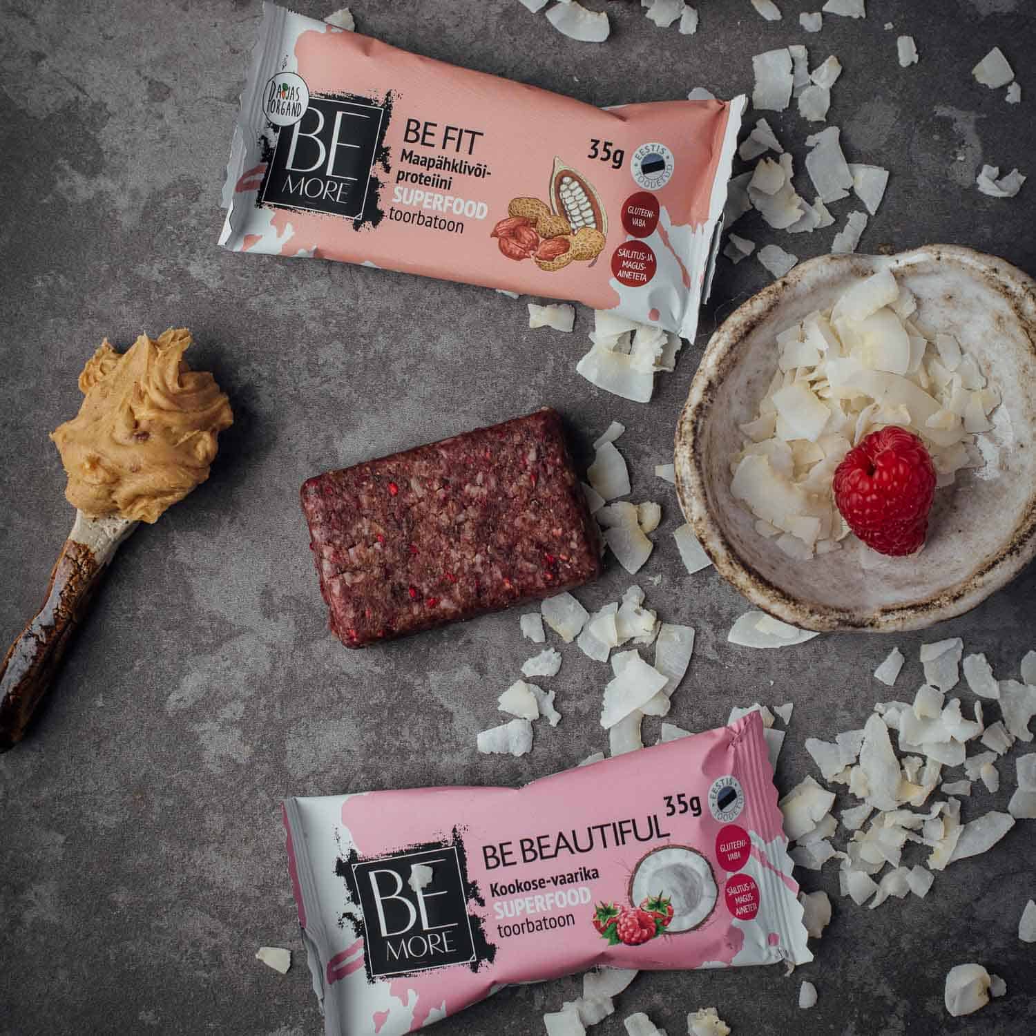 Be Beautiful kookose-vaarika toorbatoon sisaldab Be Beautiful supertoidupulbrit, mis tõstab batooni vitamiinide ja mineraalainete sisaldust. See batoon on loodud inimesele, kes soovib toetada oma nahka, juukseid ja küüsi. Be Beautiful toorbatoon on mõnusa hapuka maitsega, millele lisab mahedust kookos.