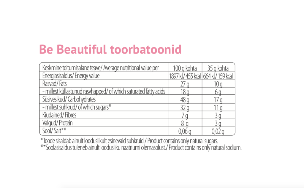 - Toorbatoonid on rikastatud Be Beautiful supertoiduseguga